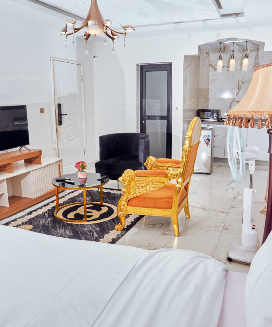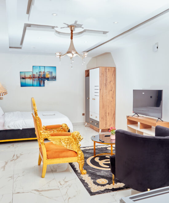 Luxury Meets Warmth Enter the Studio Room at Mike Johnson Guest House and be greeted by an oasis of luxury in the heart of Rail Bonaberi, Douala. This elegant retreat exudes sophistication with its stylish furnishings and inviting atmosphere, promising a stay filled with comfort and joy. The soft textures and harmonious colors make it a perfect haven for relaxation.